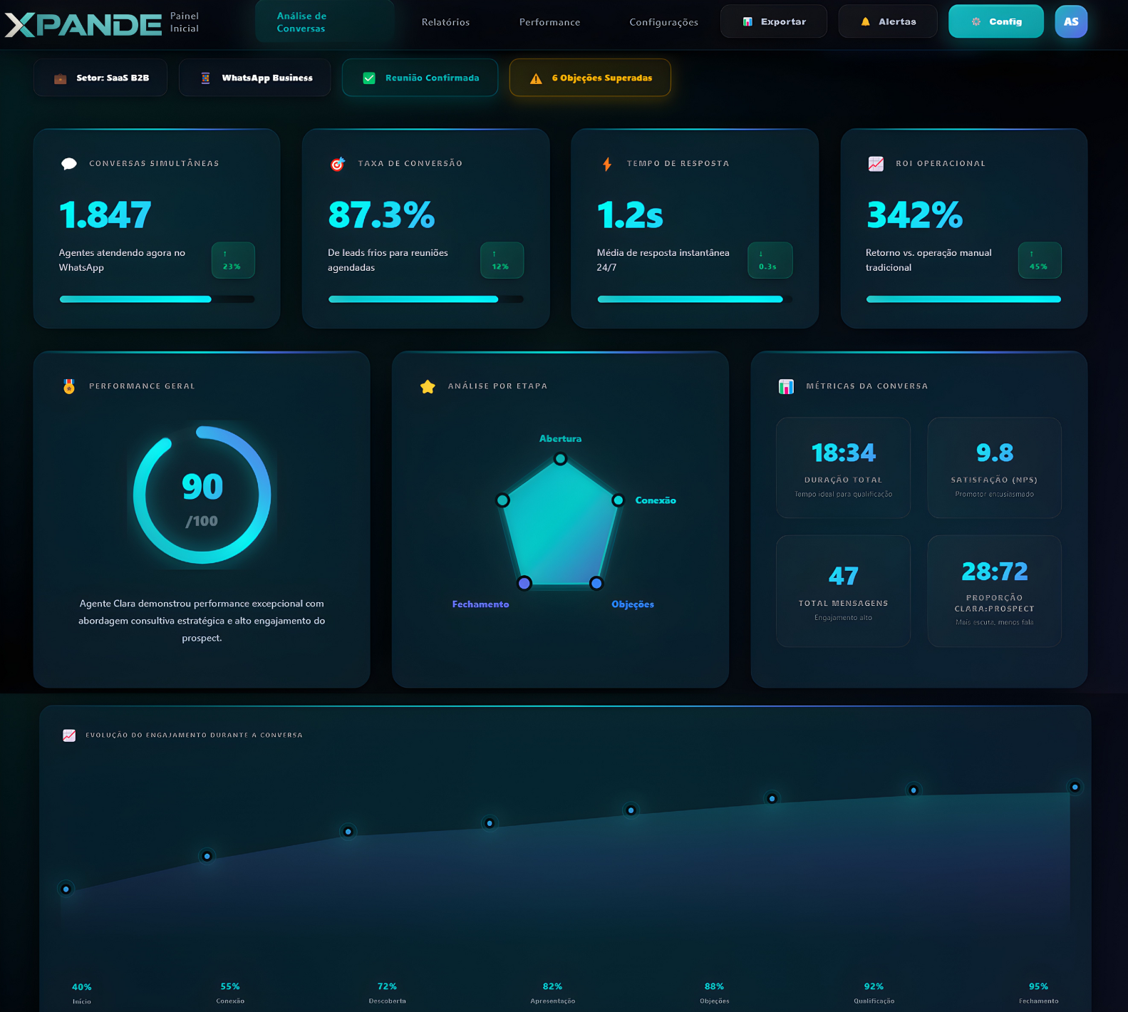 Nossa IA se conecta via APIs seguras aos seus sistemas existentes, não precisa trocar nada. Funciona com WhatsApp Business, CRMs populares (RD Station, Pipedrive, HubSpot), ERPs nacionais e planilhas. Implementação gradual sem interromper sua operação.